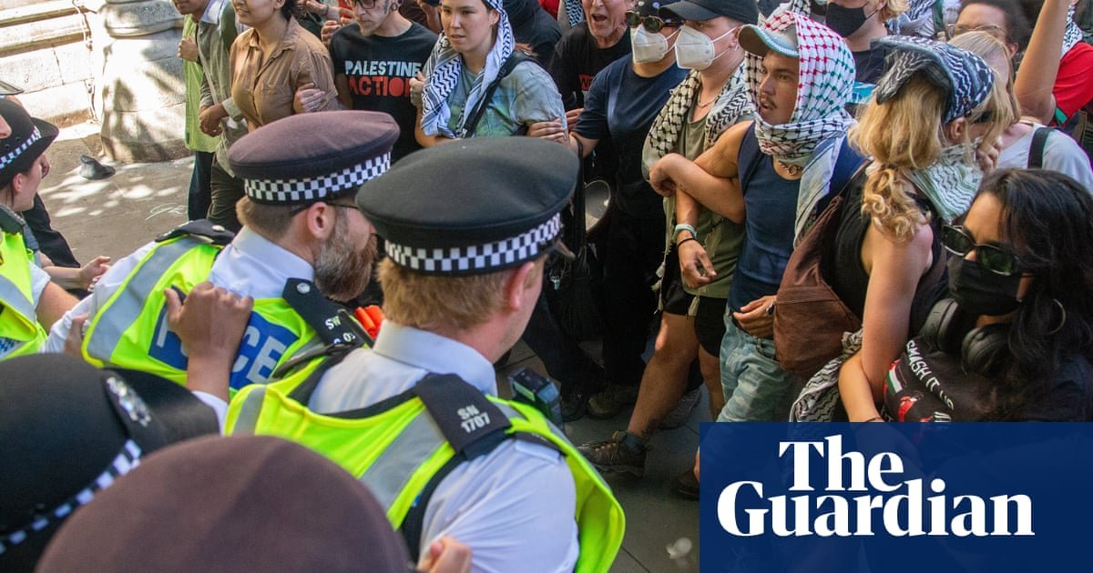The protest group Defend Our Juries wrote to the Met police commissioner, Mark Rowley, on Friday to tell him that it “may be committing offences under the Terrorism Act” in Parliament Square from 1pm on Saturday. It said non-violent protesters would hold signs saying: “I oppose genocide. I support Palestine Action.” The letter said that they “refuse to be bystanders to what’s happening to the people of Palestine, who are bombed, starved and gunned down as they queue for food”.