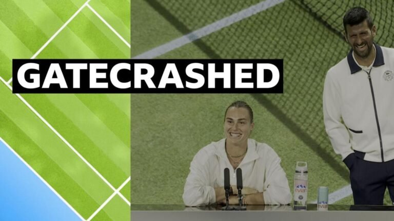 Novak Djokovic crashes Aryna Sabalenka’s media conference with an assessment of his training partner before Wimbledon.