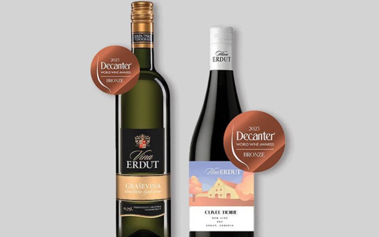 Na prestižnom natjecanju Decanter World Wine Awards 2025, Vina Erdut su osvojila dvije brončane medalje – za Graševinu kv. 0,75 berbe 2024. te za inovativno crno suho vino Cuvée Noire New Line Dry berbe 2023.