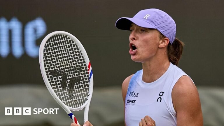 Swiatek broke Paolini’s serve three times to take the first set in just 29 minutes.