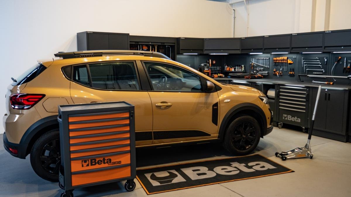 Nell’officina di Gazzetta Motori c’è una Dacia Sandero che necessita di un paio di interventi di manutenzione fai da te. Parliamo della sostituzione delle pastiglie dei freni e della sostituzione di una lampadina di uno dei due fari. La seconda operazione decisamente più semplice che la prima, ma entrambe meritano un approfondimento onde evitare danni e con l’intento di risparmiare qualche manciata di euro senza rivolgersi a un’officina specializzata. Importante, anzi fondamentale, utilizzare la giusta attrezzatura, come quella fornitaci da Beta Utensili: in primis per questioni di sicurezza, poi anche per praticità. Parcheggiamo dunque in piano la nostra Dacia Sandero e inseriamo il freno a mano, procedendo poi a sollevare l’anteriore della vettura con un cric, assicurandosi che il manico sia ben serrato verso destra, onde evitare che l’auto scenda di colpo.