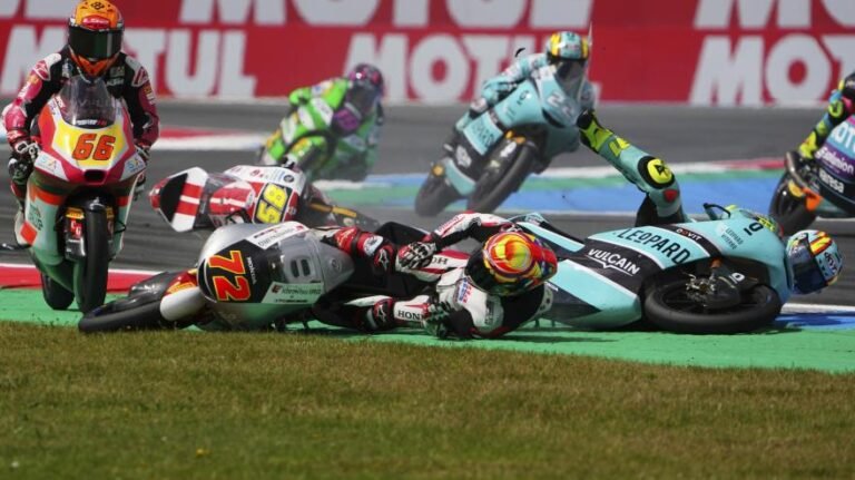 Share Nella gara di Assen, in Moto3, brutto incidente per Luca Lunetta. L’italiano del team Sic58 Honda è stato travolto da altri due piloti a seguito di una caduta. È cosciente e ha riportato la frattura della gamba destra
