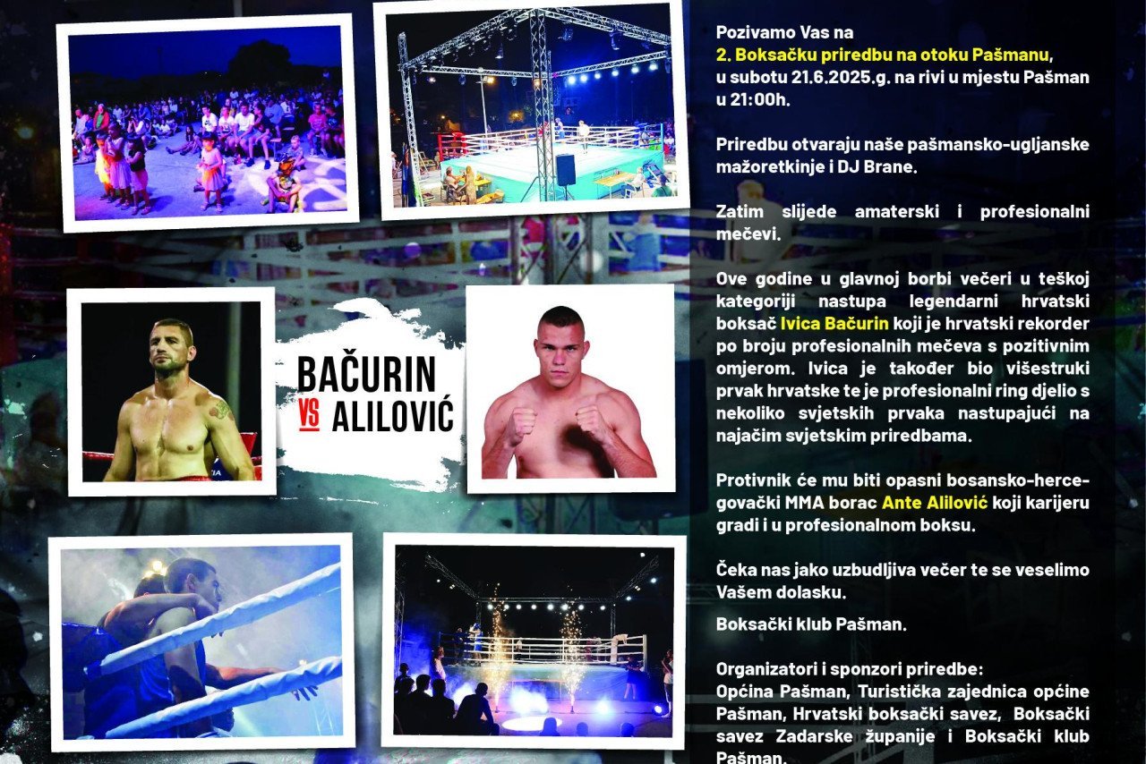 Nakon što je prošlogodišnja, premijerna manifestacija na otoku Pašmanu ostavila iza sebe pozitivne obrise, „Noć boksa“ na Pašmanu ove se godine predstavlja u svom drugom, pojačanom izdanju.
