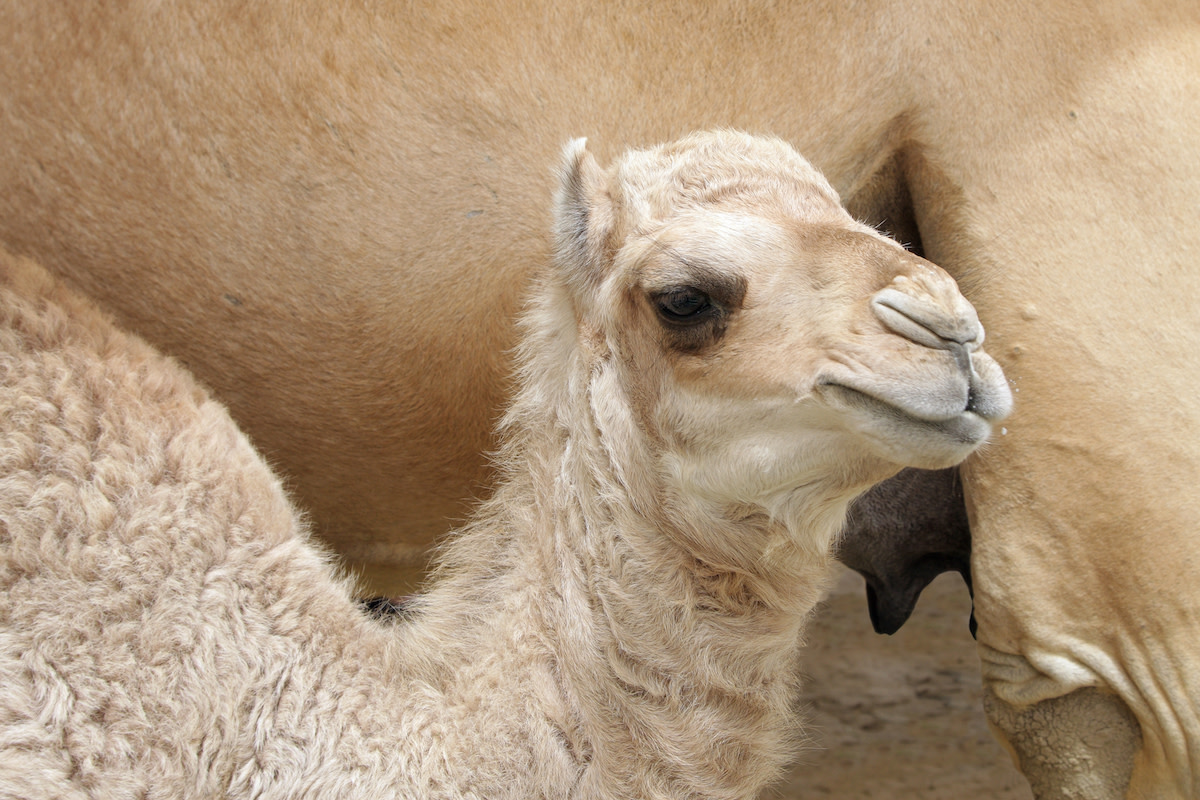 Isn’t he stunning? Those wobbly baby steps could put a smile on anyone’s face, but his snow-white coat has people scratching their heads, too. How could this rare baby be born to two paint camels (AKA regular, tan-colored camels most people know and love)?