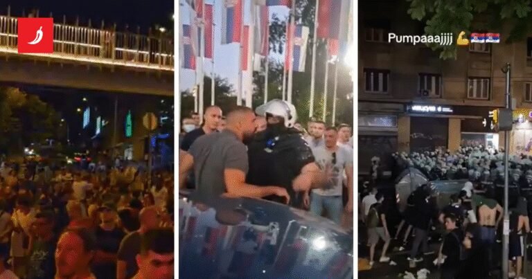 Najdramatičnije scene večeras su se odvijale u Novom Sadu, gdje su zabilježena dva ozbiljna incidenta. Prvi se dogodio oko 20.30 sati kod Mosta slobode, kada je automobil u kojem su bila četvorica vidno alkoholiziranih mladića prešao pješačku stazu i plato s postavljenim zastavama, probivši blokadu. Okupljeni građani su ih zaustavili i čekali dolazak interventne policije. Vozač je priveden, no građani su negodovali jer je drugi sudionik pokušao odvesti automobil, navodno pod utjecajem alkohola. Nakon prepirke, policija je ipak preuzela vozilo.
