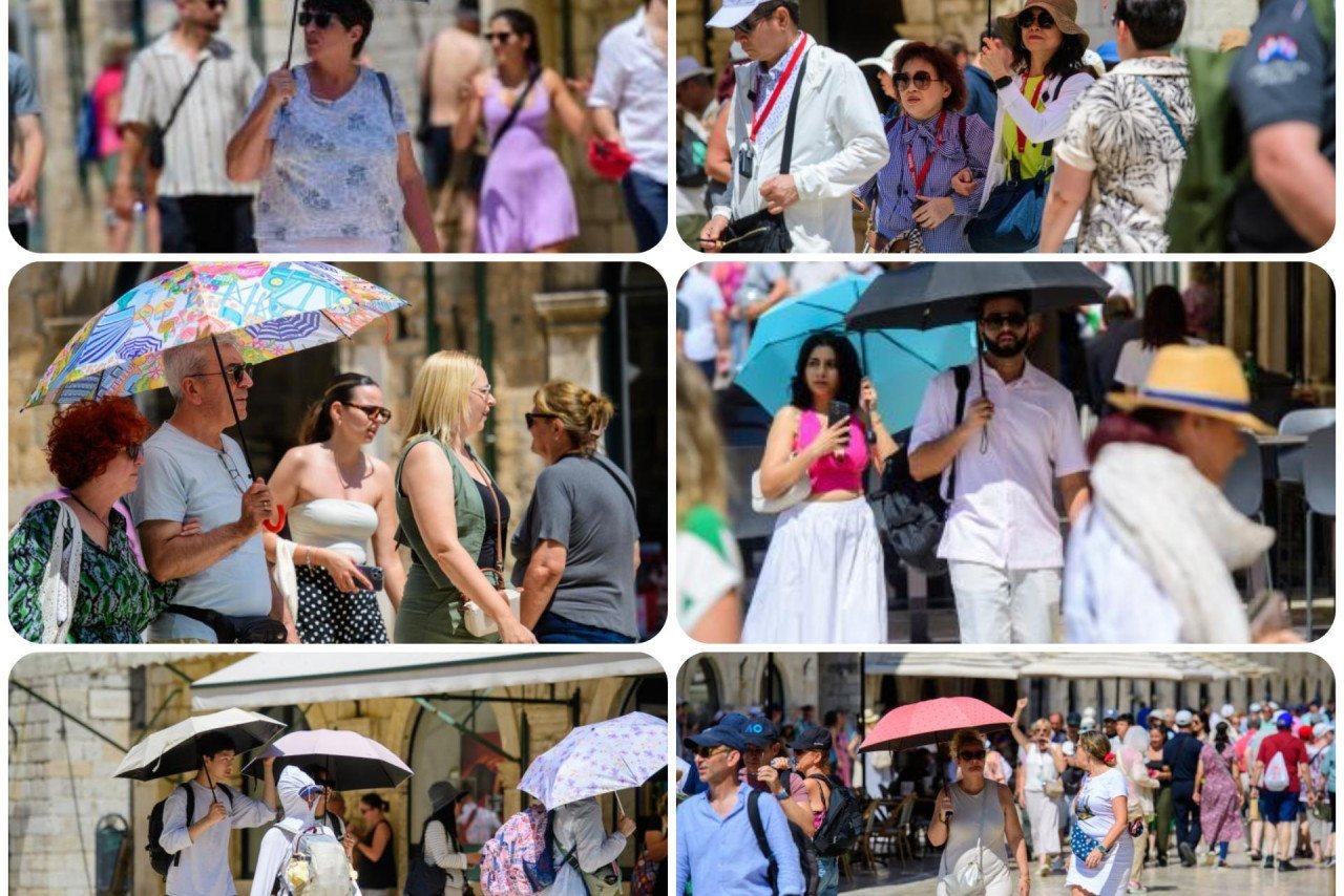 Share Stradun je i danas, unatoč visokim temperaturama bio pun šetača. Klobuci, kape u suncobrani bili su glavni su modni dodatak jer bez toga se na užegli Stradun ne može. Evo koga smo zatekli u subotnjoj špici.