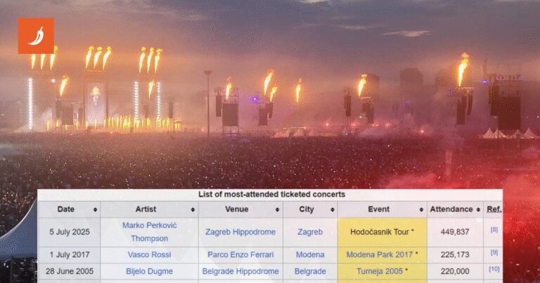 MARKO Perković Thompson ušao je u glazbenu povijest – njegov koncert održan 5. srpnja na zagrebačkom Hipodromu službeno je postao najposjećeniji plaćeni koncert svih vremena, potvrđeno je na engleskoj verziji Wikipedije.