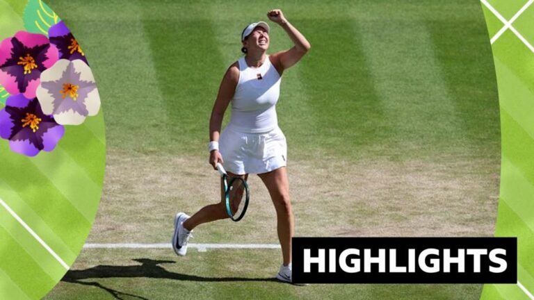 Watch highlights as American 13th seed Amanda Anisimova beats world number one Aryna Sabalenka 6-4 4-6 6-4 to reach the women’s singles final at Wimbledon 2025.