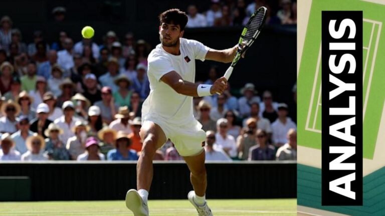 BBC Sport pundits Tim Henman and John McEnroe discuss how Carlos Alcaraz managed to “set the tone” from his first serve against Taylor Fritz in the men’s semi-finals at Wimbledon that he went on to win in four sets and remain on course for a third successive title.