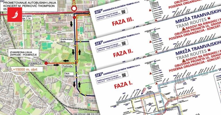 ZBOG koncerta Marka Perkovića Thompsona koji se održava ove subote na Hipodromu, ZET uvodi opsežne izmjene u prometu tramvaja i autobusa. Izmjene će se odvijati u tri faze, a utjecat će na veliki dio mreže javnog prijevoza, osobito u Novom Zagrebu, na Savskoj cesti, Aveniji Dubrovnik i kod Glavnog kolodvora.